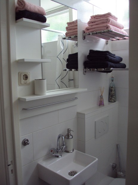 Bad-, handdoeken en een haarfohn zijn aanwezig.
