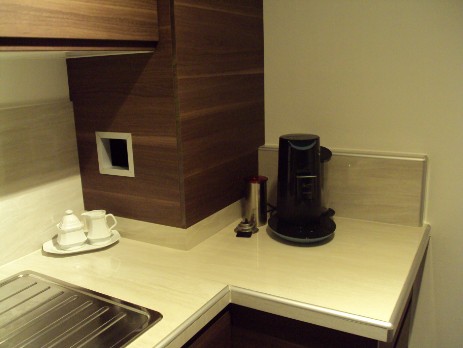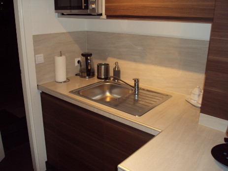 De keuken is voorzien van de benodigde apparatuur. Koffiezetapparaat, waterkoker. Broodrooster en tosti-apparaat.