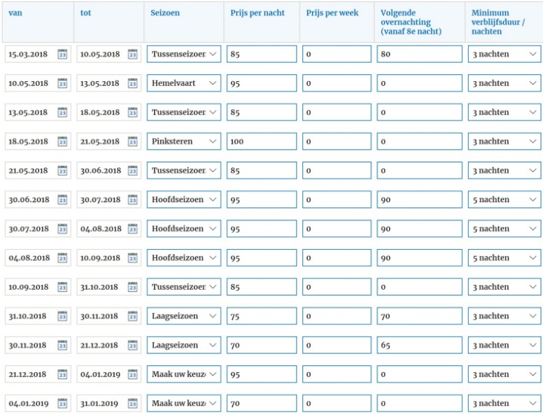 Deze prijzen zijn voor het seisoen 2018 tot 31 Januari 2019